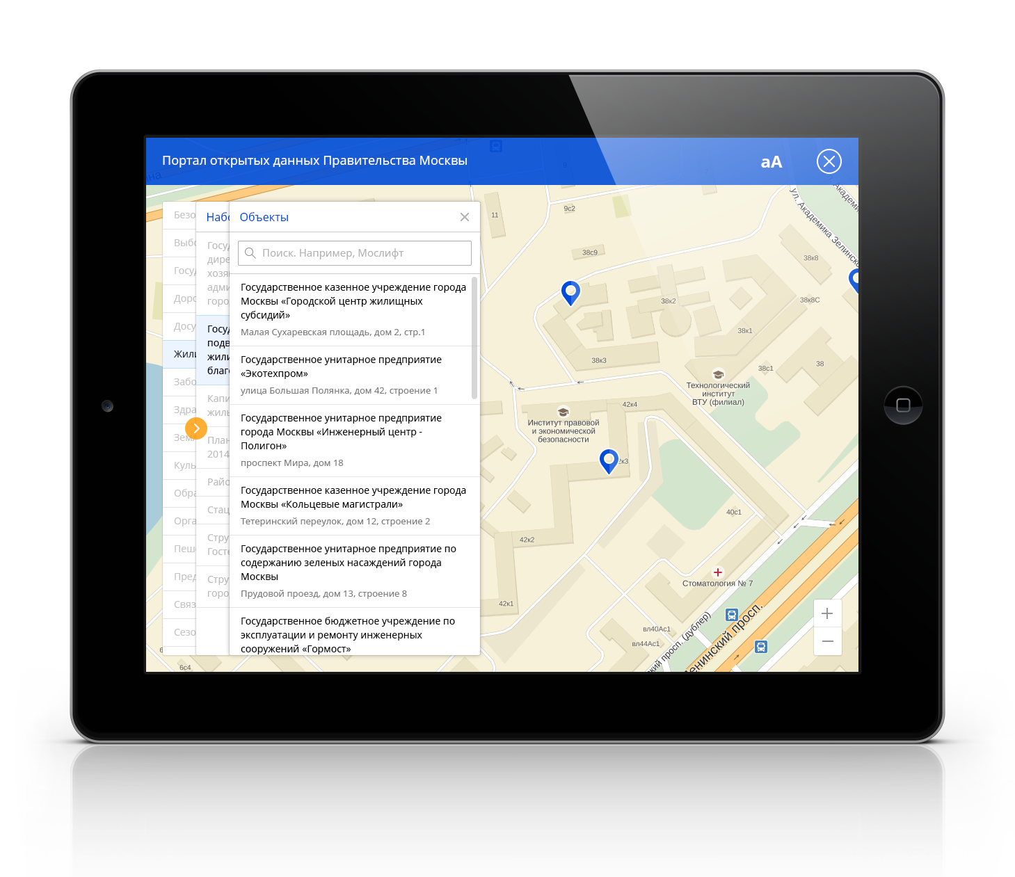 - поиск объектов по их названию