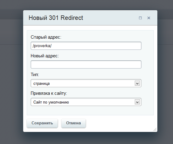 Модуль «SEO-редиректы» автоматически создает 301-редиректы при изменении адресов страниц (при переносе элемента в другой раздел или изменении символьного кода).