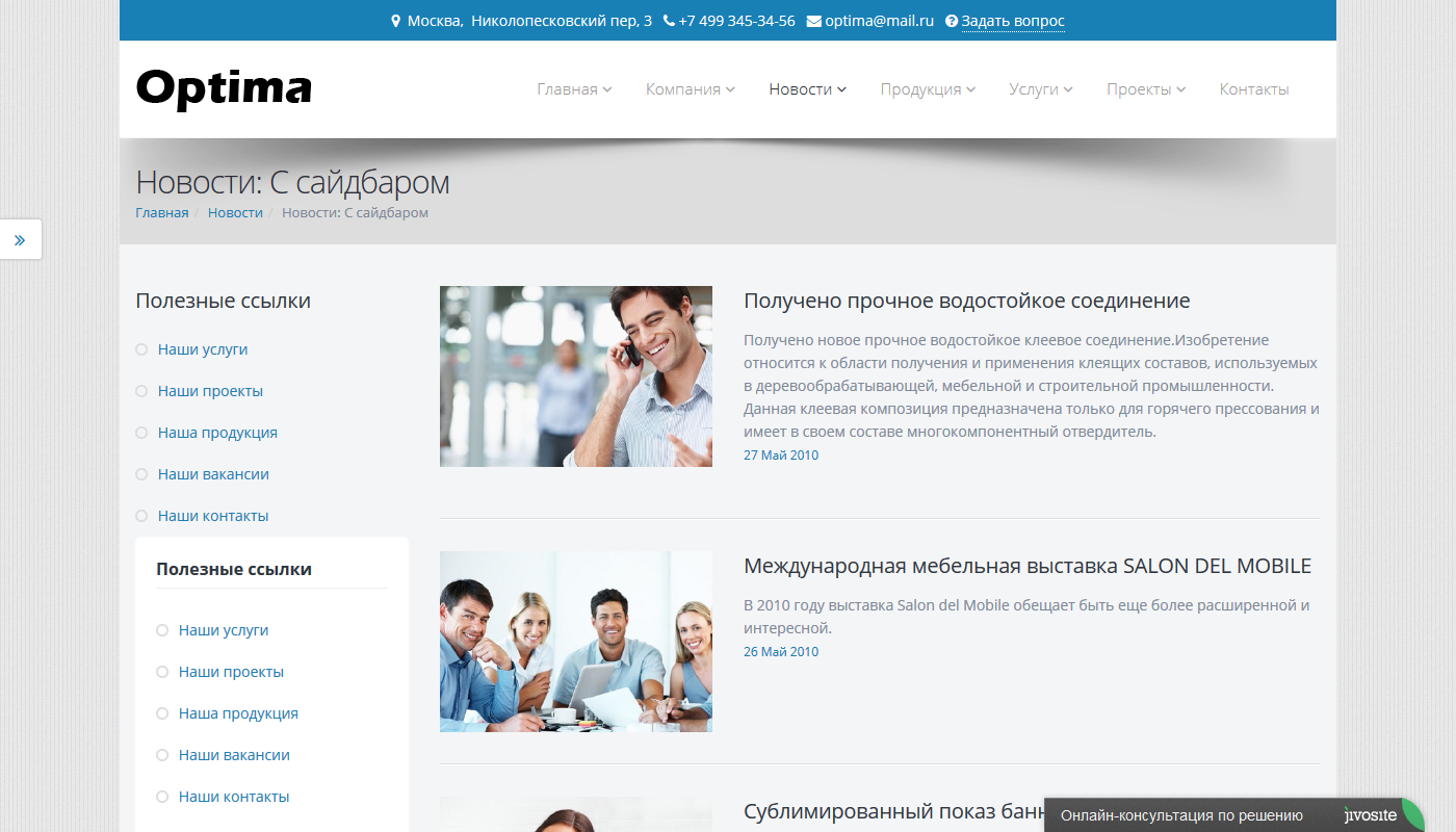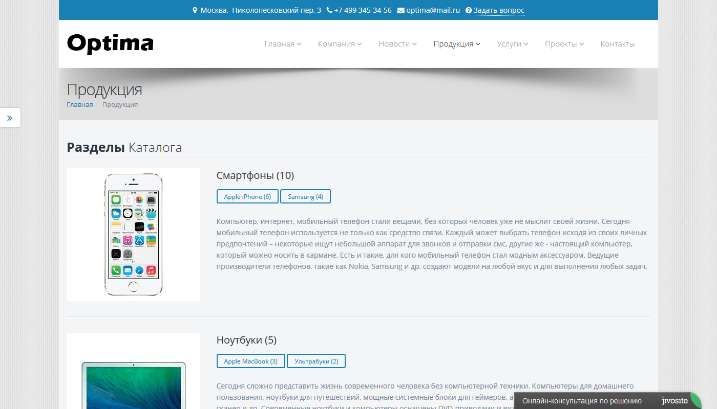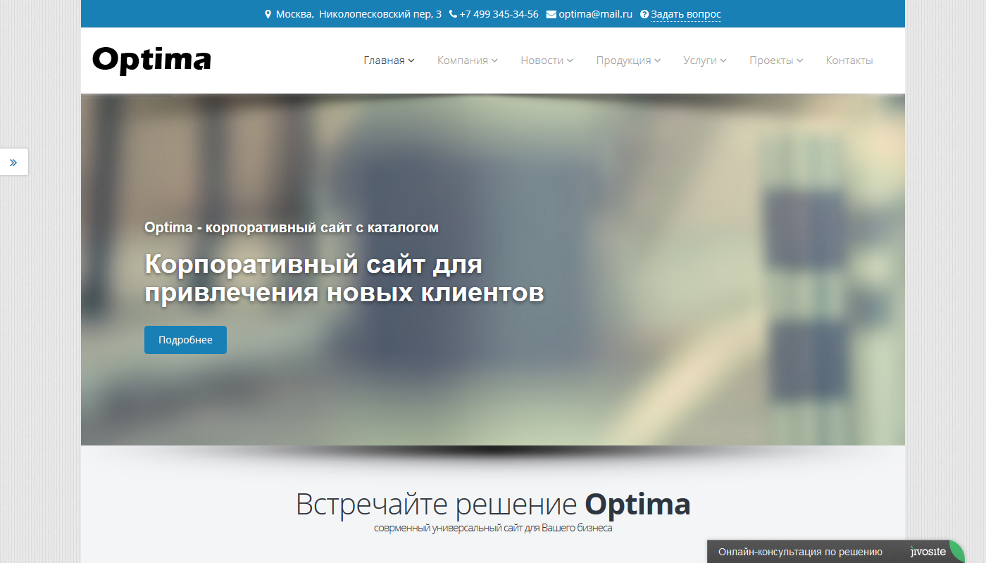 Optima - корпоративный сайт с каталогом - это готовое решение с адаптивным дизайном, которое позволит Вам не только заявить о себе в интернете, но еще и показать клиентам Вашу продукцию с возможностью заказа товара. Теперь для продажи Ваших товаров Вам не потребуется редакция "Малый бизнес" или выше, Вам всего лишь необходимо заменить демо-контент и Вы сразу можете начинать свои продажи в онлайне, используя при этом редакцию "Старт". Удобный каталог и умный фильтр позволит клиентам легко ориентироваться в Вашем каталоге и находить нужные товары, тем самым увеличивая Ваши продажи. Дизайн решения, цветовую схему и отображение некоторых блоков Вы сможете легко изменить за несколько кликов мыши в настройках модуля, не имея при этом каких-либо знаний языков программирования (см. скриншот). И все это на редакции "Старт", попробуйте, Вы не пожалеете!