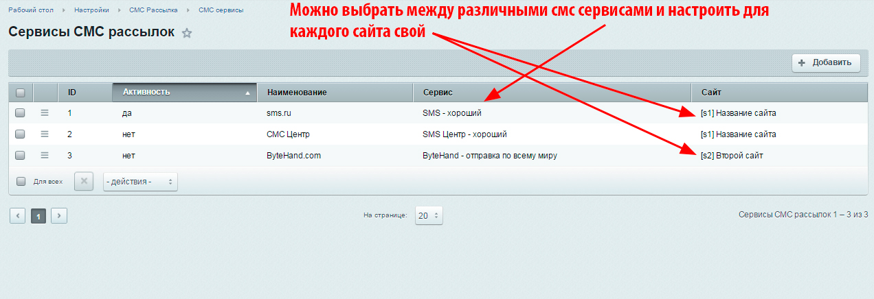 - Использовать различные смс сервисы для рассылки на выбор с собственными именами отправителей (которые указываются в настройкахх сервиса)