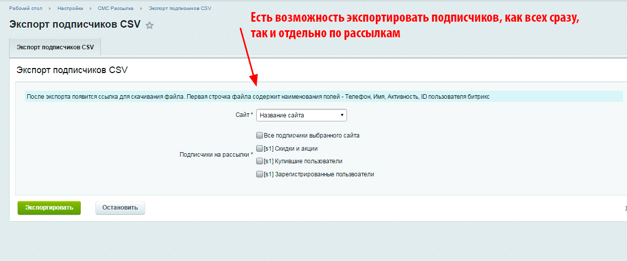 - Экспортировать подписчиков, как всех так и отдельной рассылки