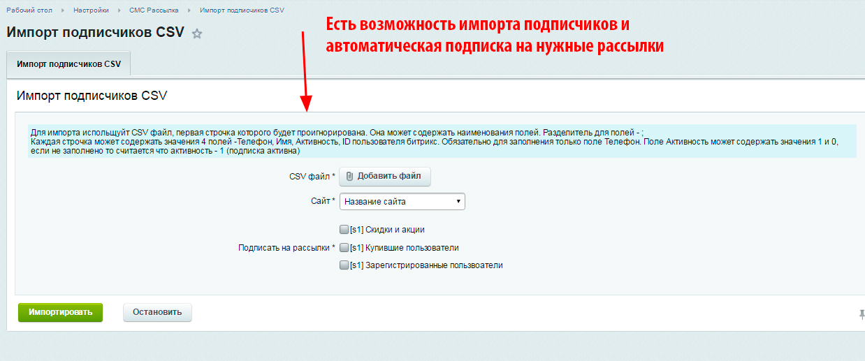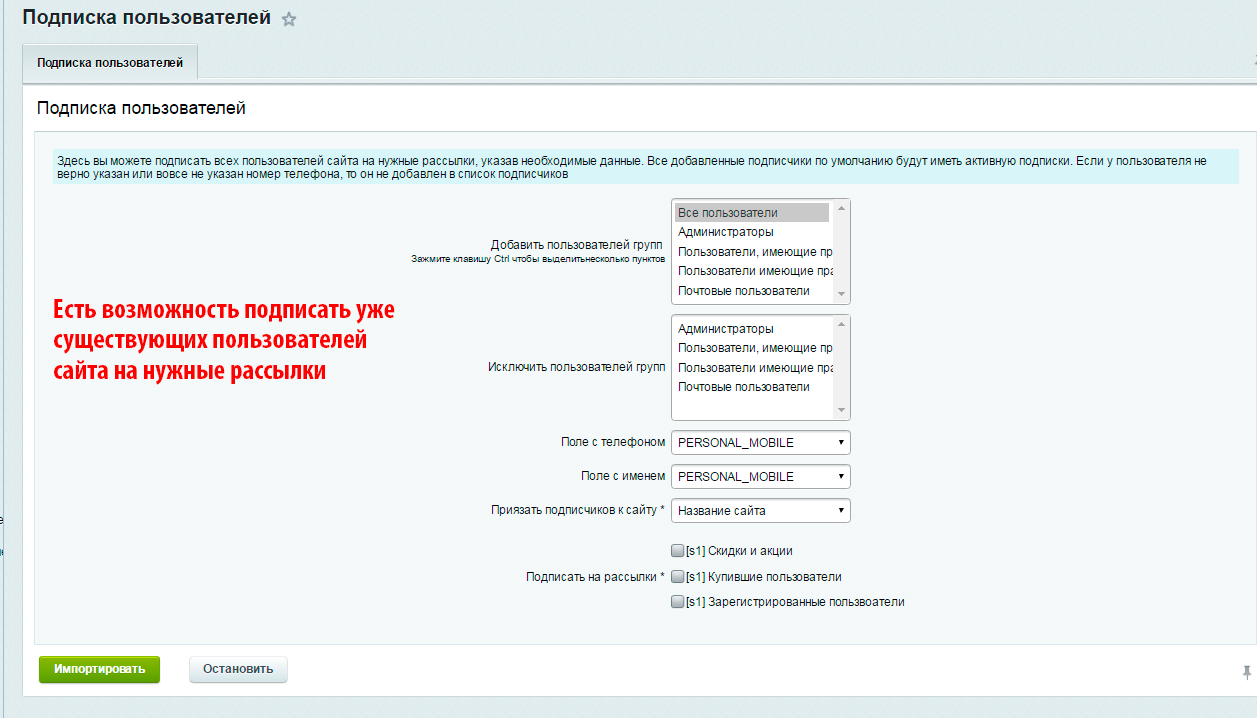 - Импортировать подписчиков и автоматически подписывать на те или иные рассылки