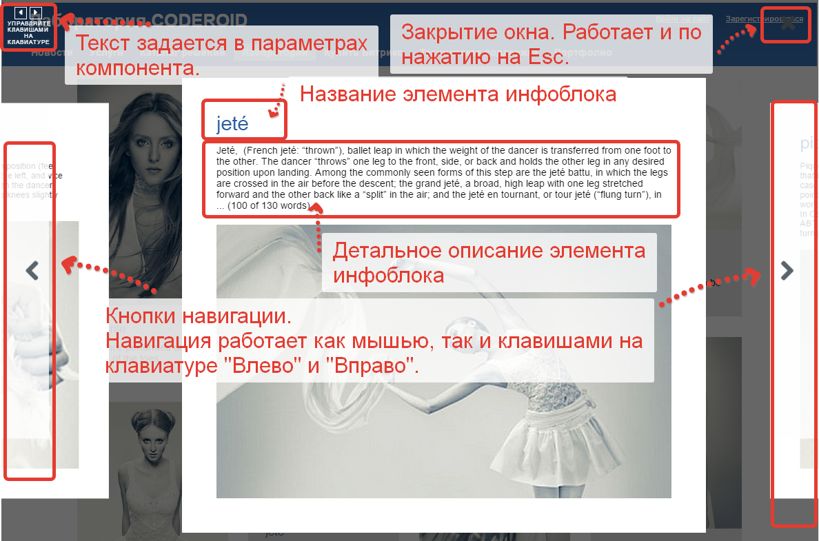 - Прекрасно подойдет в качестве галереи в которой нужно детально описать каждое изображение.