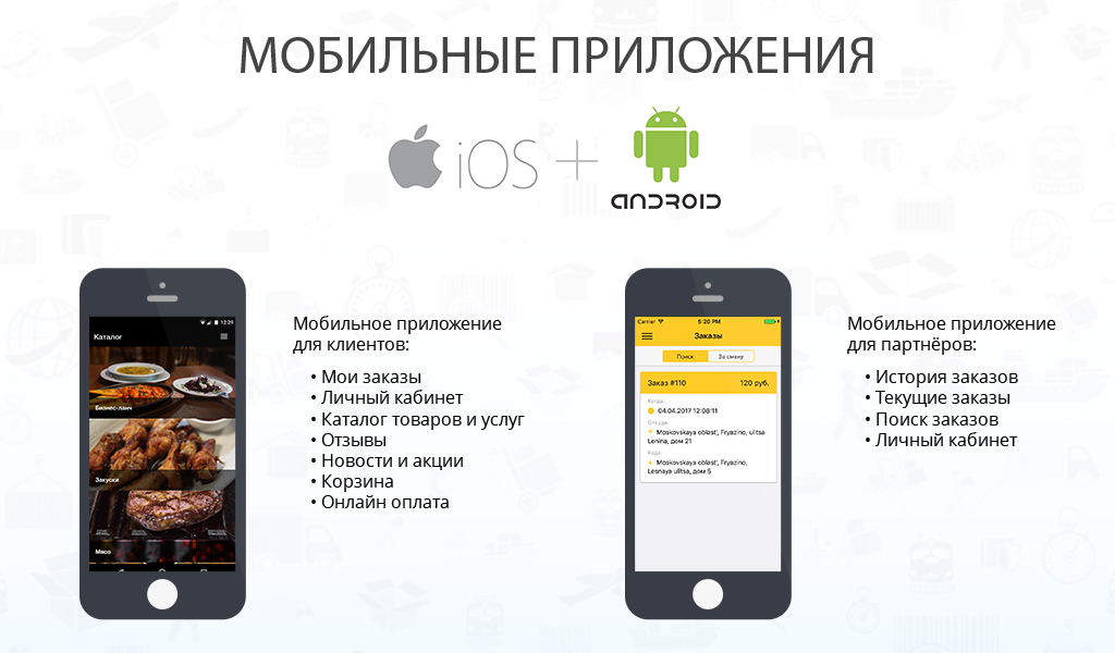 - Ознакомившись со списком товаров/услуг клиент может оформить заказ как через сайт, так и через мобильное приложение