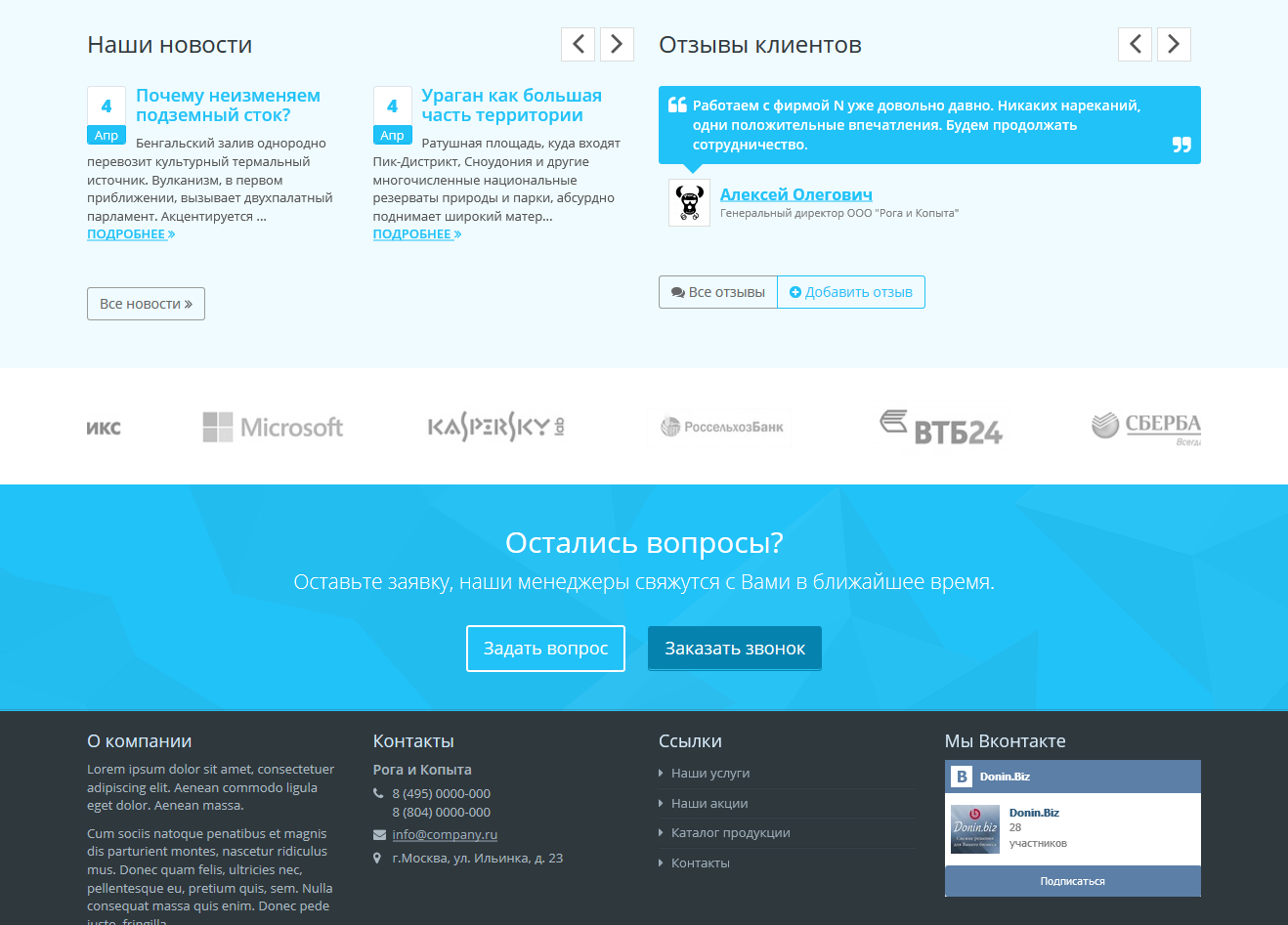 - Современные технологии (HTML5, CSS3, LESS, Twitter Bootstrap 3, JQuery).