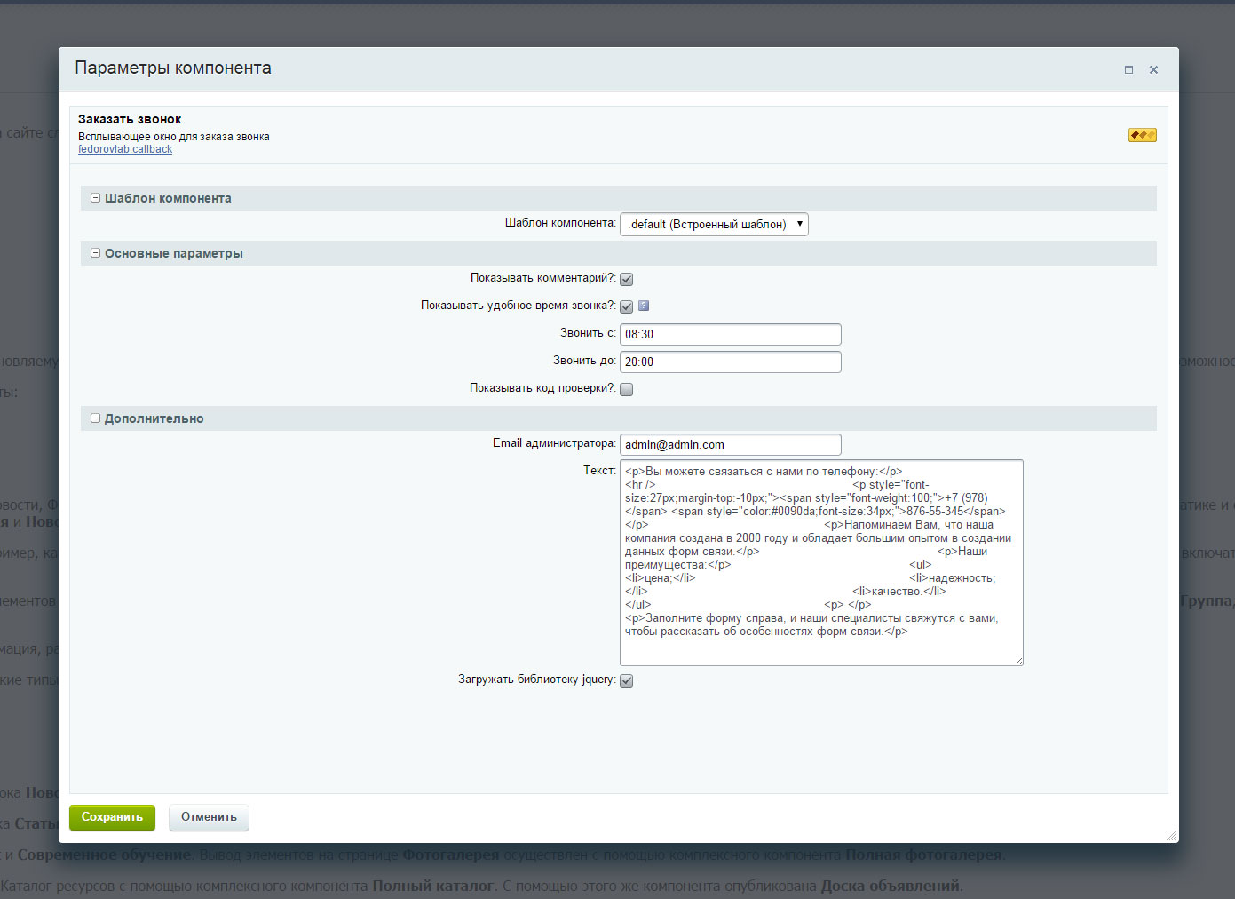 — письмо о заказе обратного звонка приходит на почту администратору;