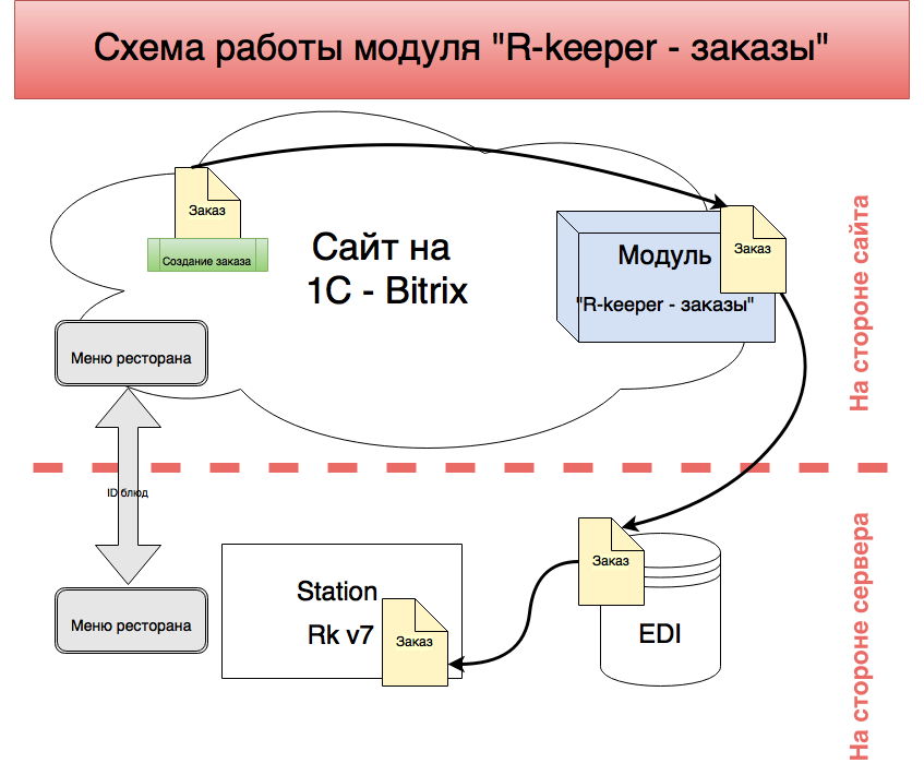Также для работы модуля необходимо наличие модуля ExternalDeliveryInterface (EDI), а так же полностью сопоставленное ,между сайтом и R-Keeper, меню.