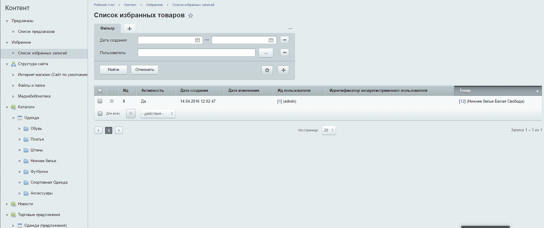 Имеется удобный раздел в панели администрирования для просмотра и управления избранным Ваших пользователей.