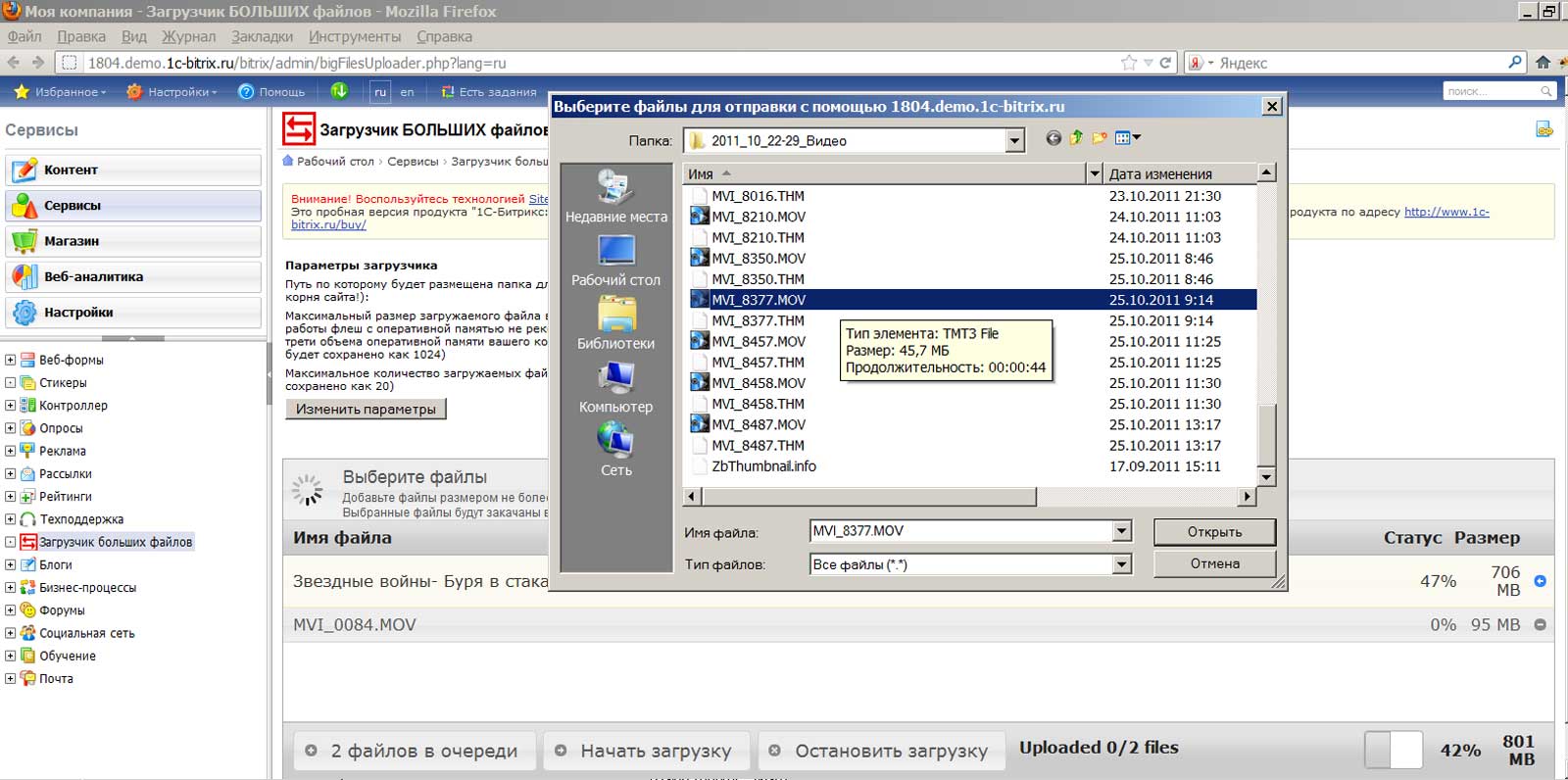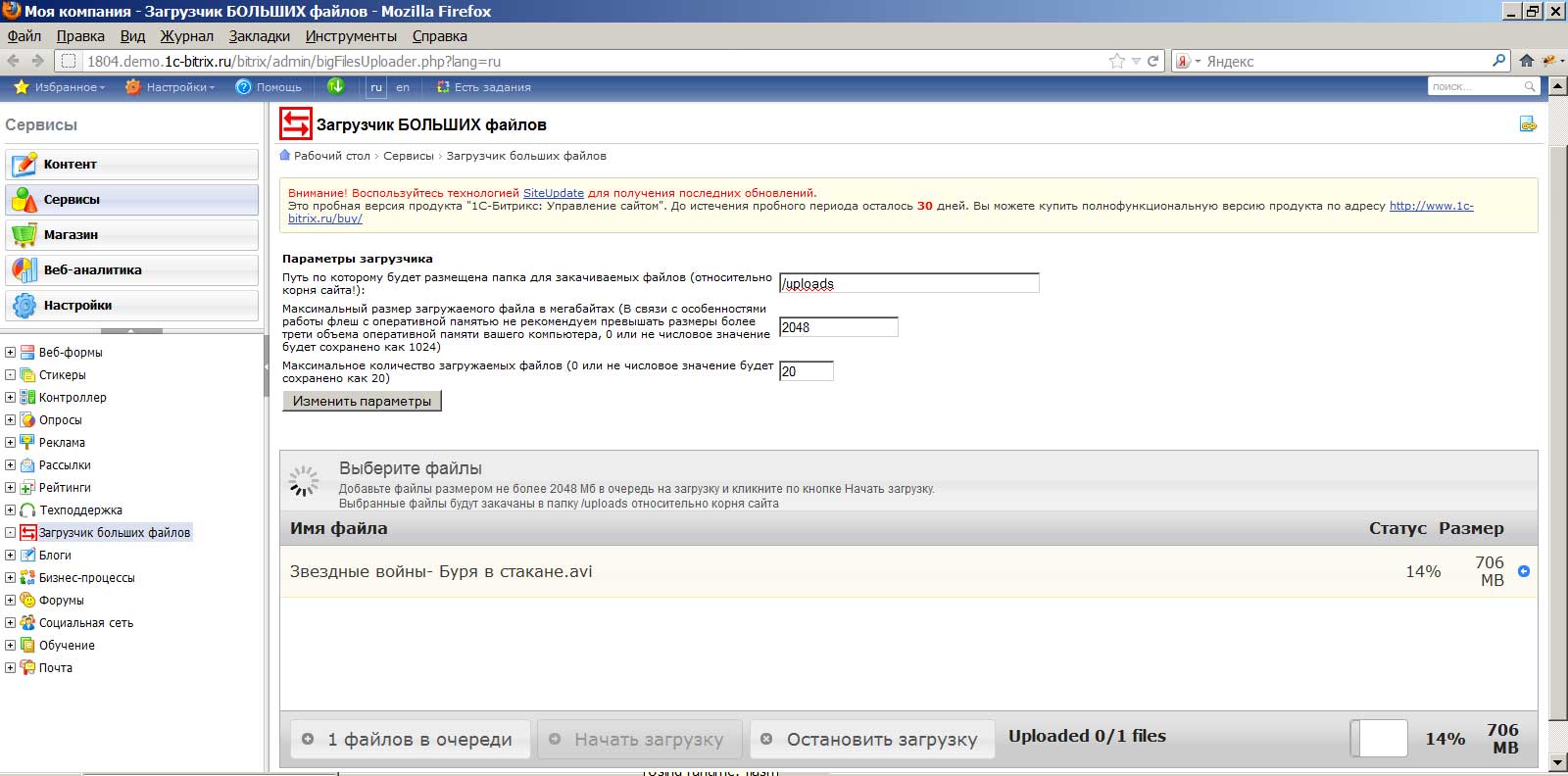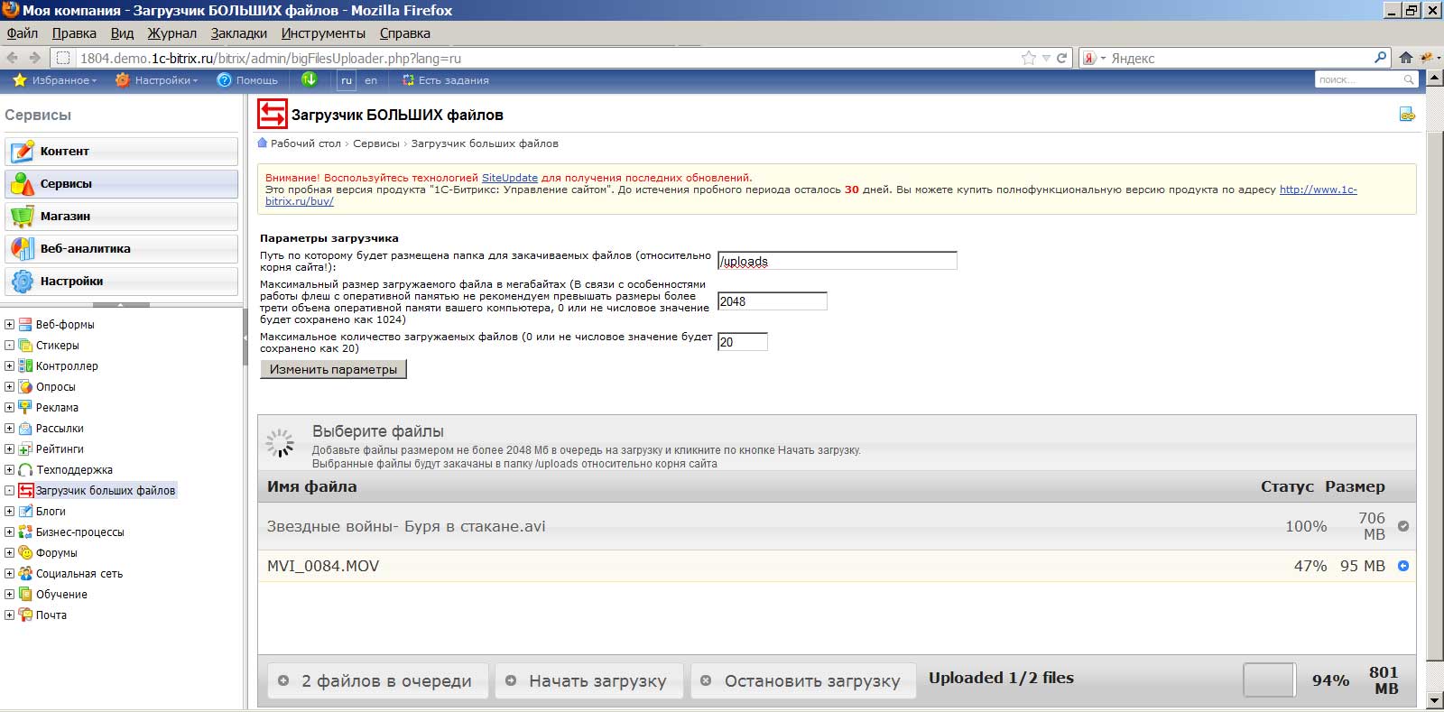 Больше не придется использовать фтп клиент для загрузки больших роликов на сервер!