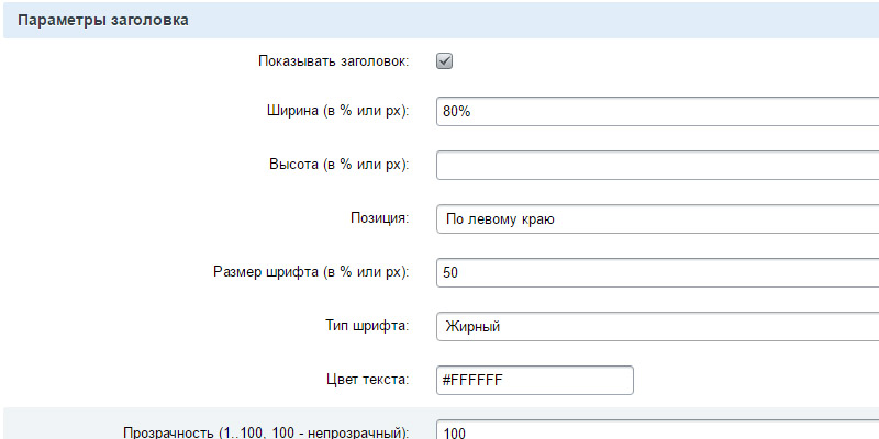 - Параметры заголовка. Заголовок можно как включить так и отключить.****