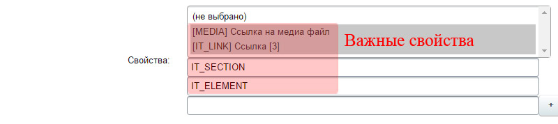 2.1 Свойства. Должны быть выбраны свойства MEDIA, IT_LINK, IT_SECTION, IT_ELEMENT - Параметры переключателей. Необходимо выбрать тип (Отключить/Изображение/Символ).****