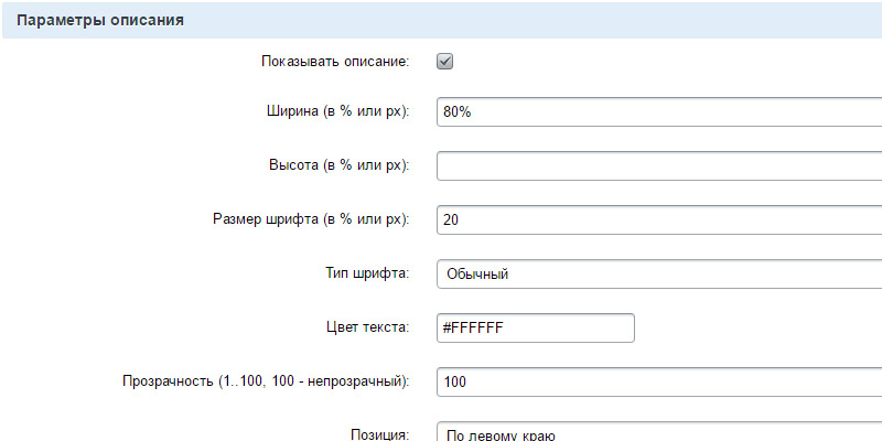 - Параметры описания. Заголовок можно как включить так и отключить.****