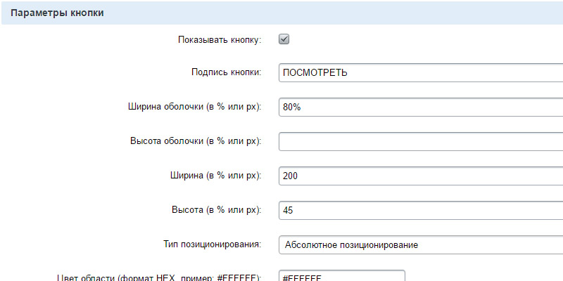 - Параметры кнопки. Заголовок можно как включить так и отключить.****