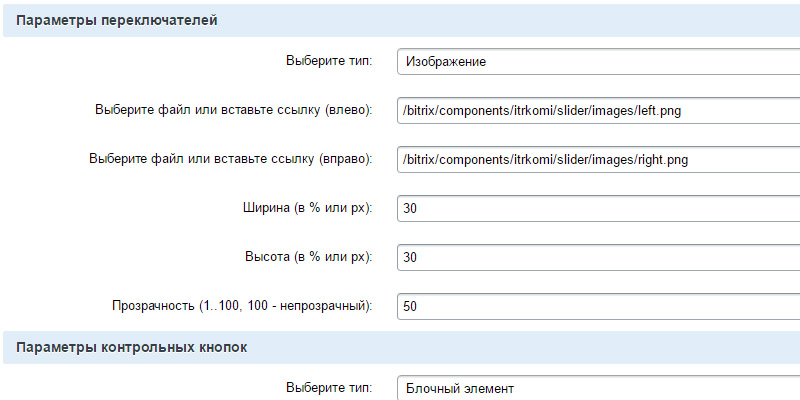- Параметры слайдера