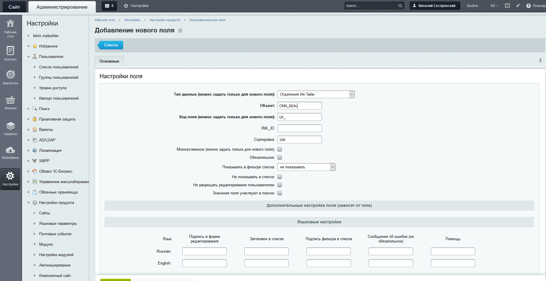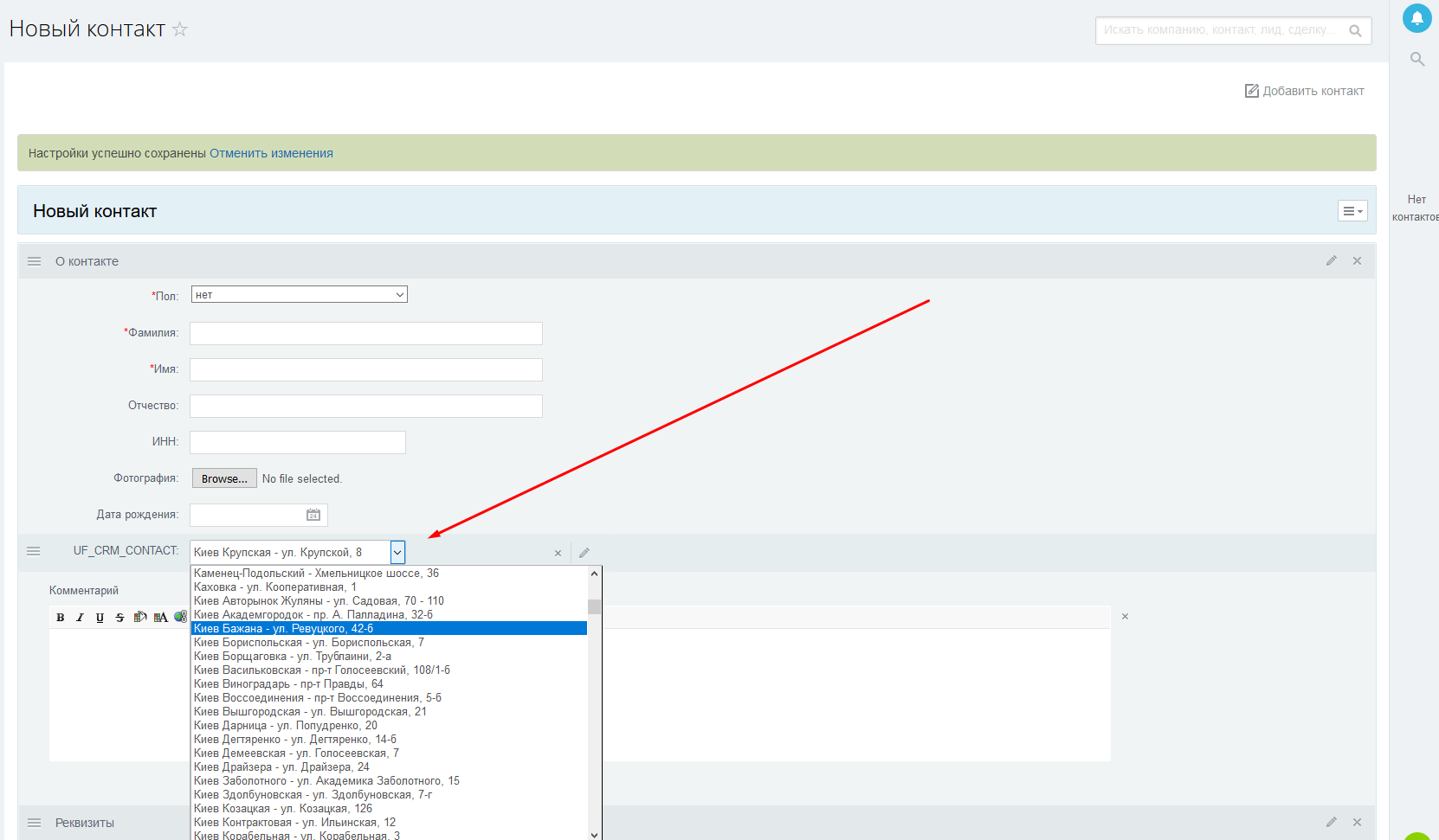 Так же вы можете создать пользовательское свойства «Отделения Ин Тайм». Данный функционал удобно использовать во всех CRM сущностях Битрикс24, а также USER, IBLOCK SECTION . Для обновления списка отделений разработан импорт из csv определенного формата.