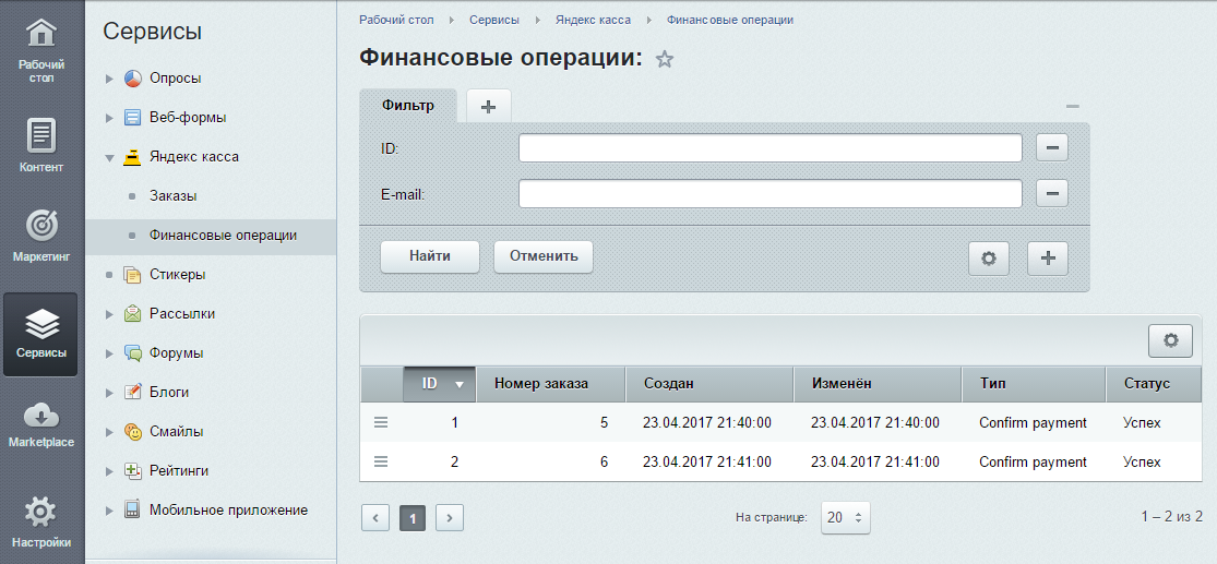Модуль позволяет реализовать взаимодействие сайта с веб-сервисом Яндекс.Касса для магазинов по управлению заказами (Merchant Web Services или MWS). Реализован интерфейс для защищенного взаимодействия автоматизированной информационной системы магазина и Яндекс.Кассы через интернет.