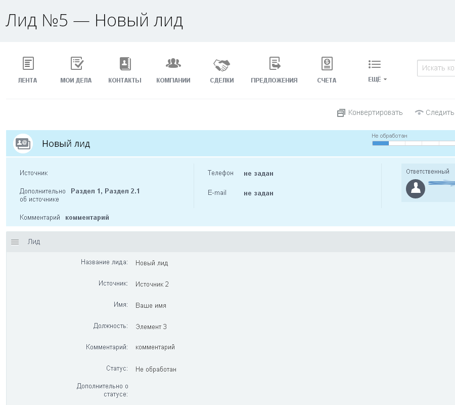 - при формировании лида в Битрикс 24 указанным свойствам устанавливается значение (наименование) раздела/элемента. Для множественного типа свойств формируется список через запятую всех выбранных значений (наименований) разделов/элементов.