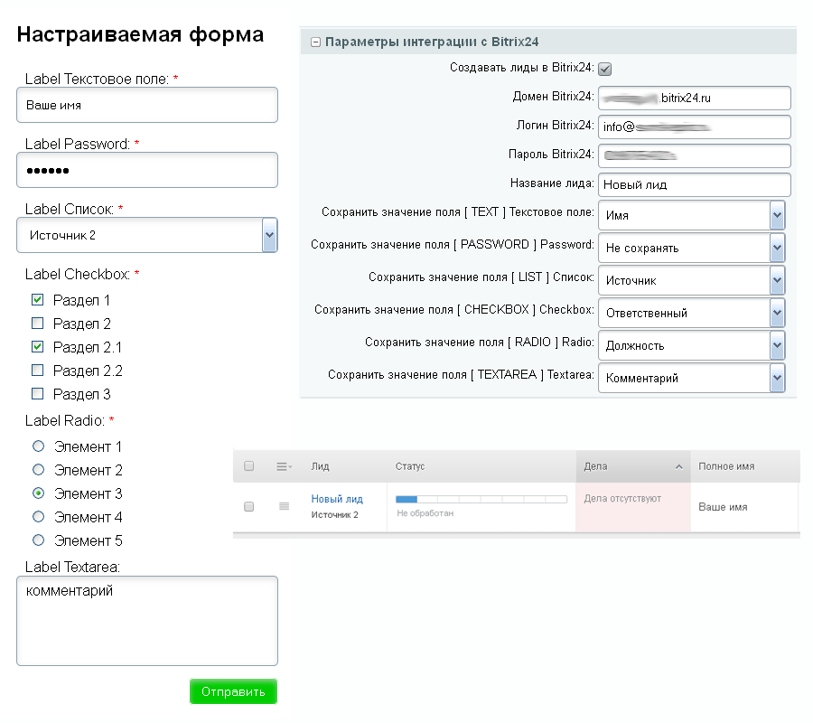 Конструктор форм + сборщик лидов Битрикс 24