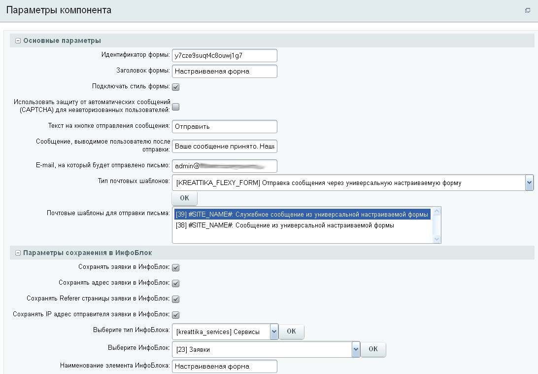 - Указание ID формы в настройках компонента, позволяет размещать несколько форм на одной странице - формируется автоматически при первичном размещении компонента.