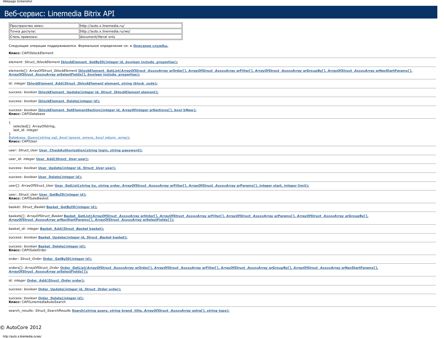 Обратите внимание, что названия функций соответствуют API Bitrix, а потому документацию по параметрам можно прочесть в соответствующих разделах справки для разработчиков.