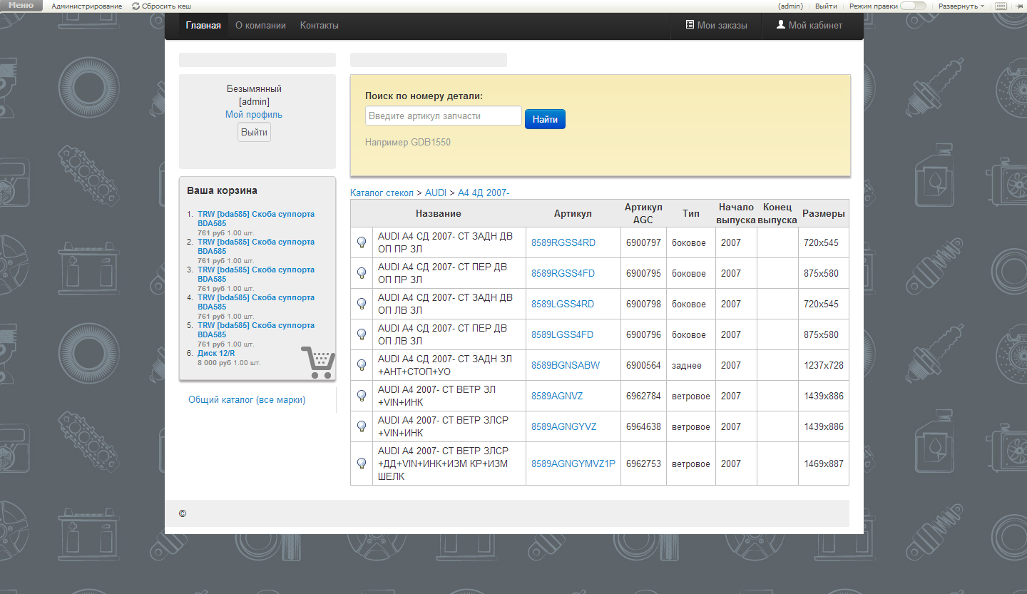 База содержит около 10 000 стекол с еврокодами и применимостью, также вы можете самостоятельно пополнять каталог.