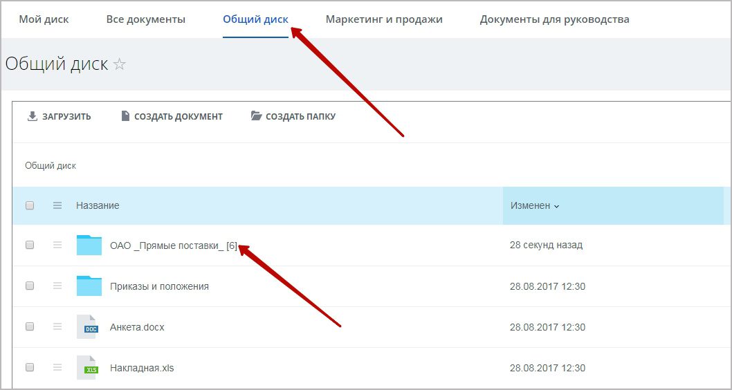 Также есть возможность настройки прямого перехода в папку со страницы компании или сделки, что сокращает время на поиски нужной папки.