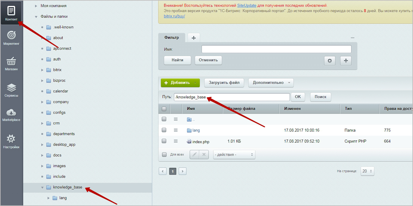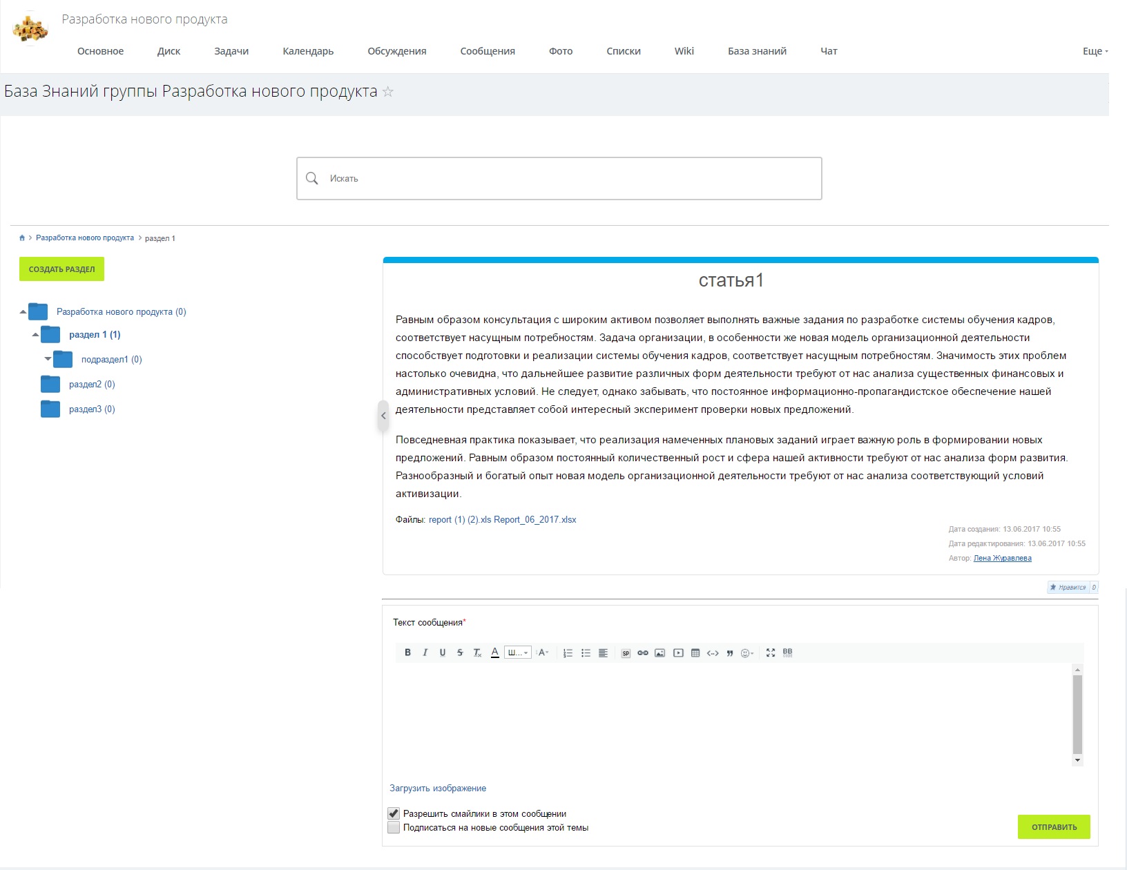 База знаний — это система хранения статей, позволяющая удобно распределять их по разделам, а также привязывать их к рабочим группам. Это универсальный инструмент по систематизации информации в вашей компании.
