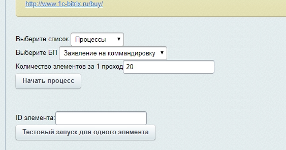 Для автоматизации этого процесса нами был создан модуль массового запуска бизнес-процессов на сущностях CRM и списках.