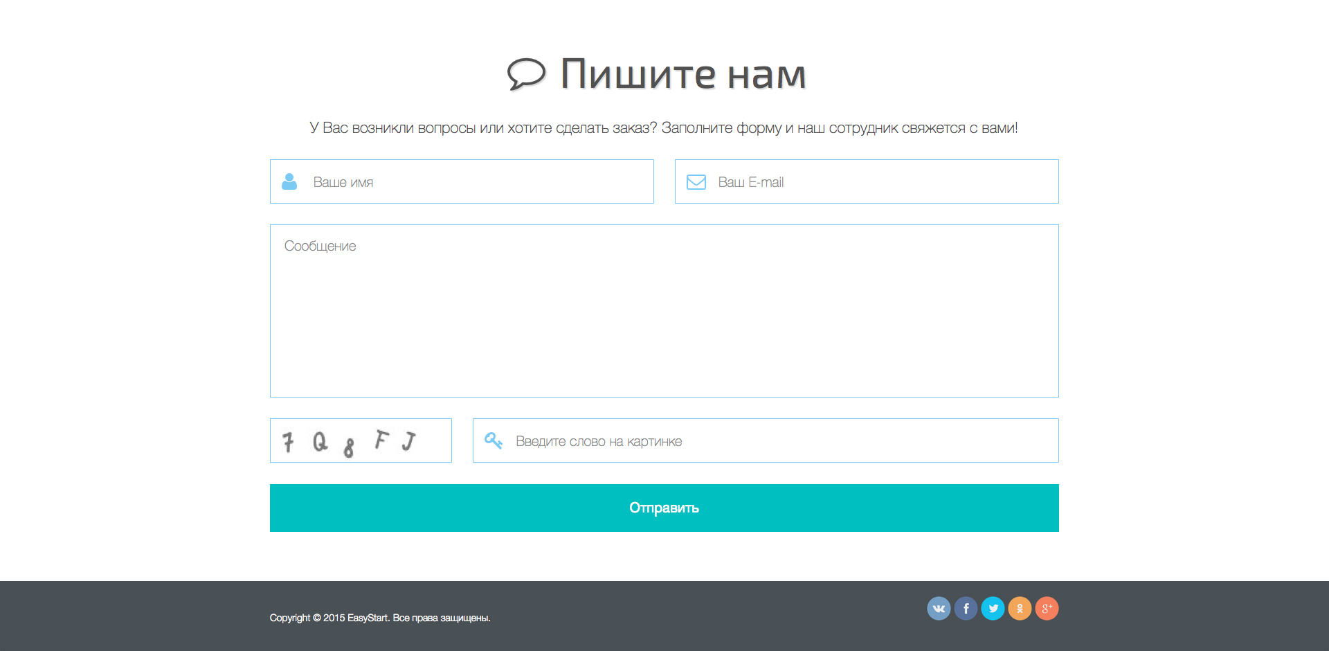Блок «Пишите нам» - Данных блок представляет собой форму обратной связи для обращения Ваших потенциальных клиентов. Сообщение приходит на указанный в настройках данного блока e-mail (например e-mail ответственного сотрудника Вашей компании).