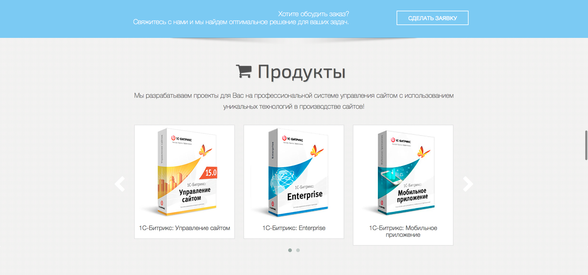 Блок «Продукты» - В данном блоке Вы сможете разместить продукты или товары с их изображением, подробным описанием и стоимостью.