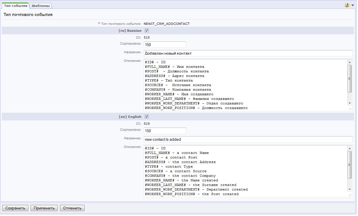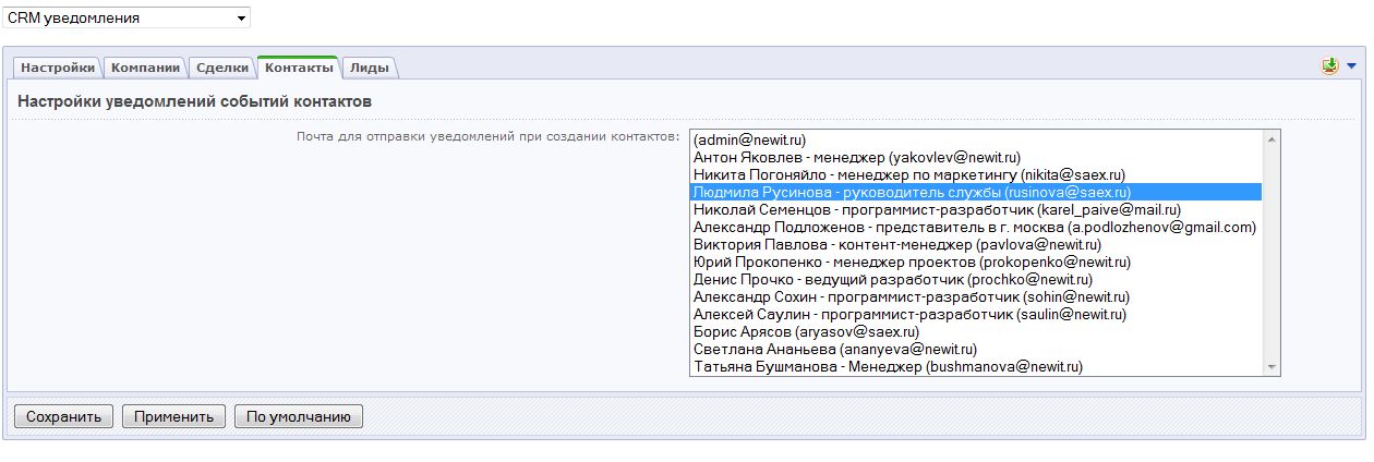 • Уведомление при создании контакта
