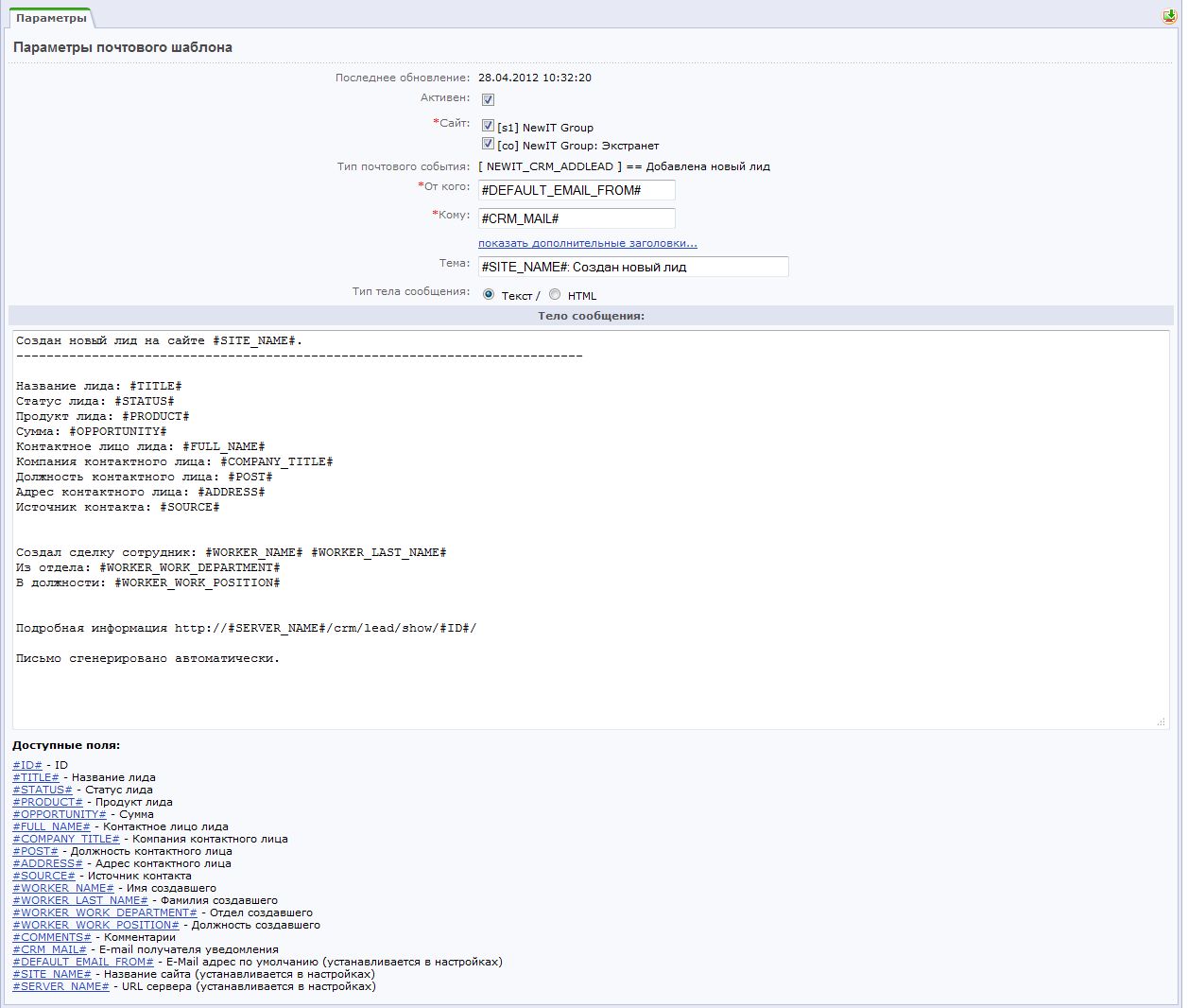 • Уведомление при создании лида