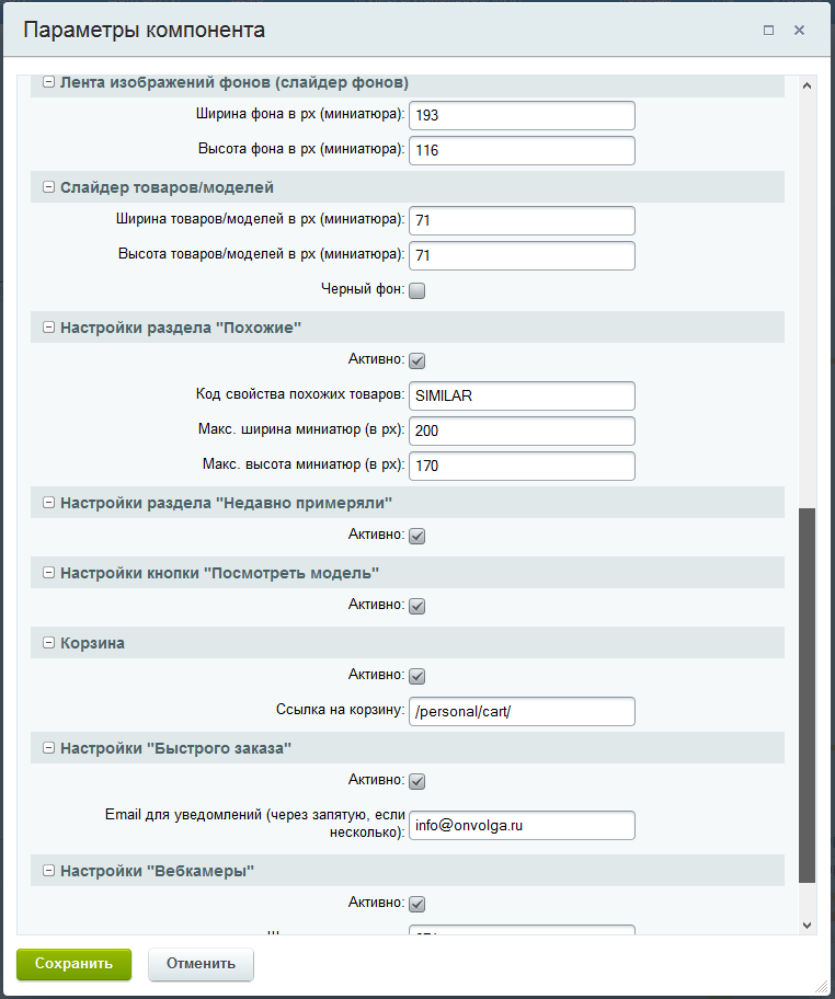 - Возможность разместить кнопку "Примерить" в карточке товара.