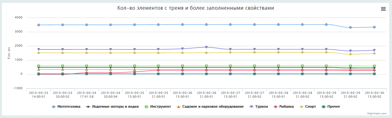 Вся информация выдается в удобном виде, есть возможность сравнить состояния каталога за определенные даты.