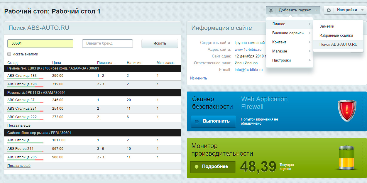 1С-Битрикс всегда контролирует производительность вашего сайта и даёт рекомендации по её улучшению. Встроенный механизм интеллектуального кэширования позволяет анализировать и существенно ускорить загрузку веб-страниц. Во всех редакциях доступна CDN для хранения статической информации сайта — это существенно снижает нагрузку на сервер.