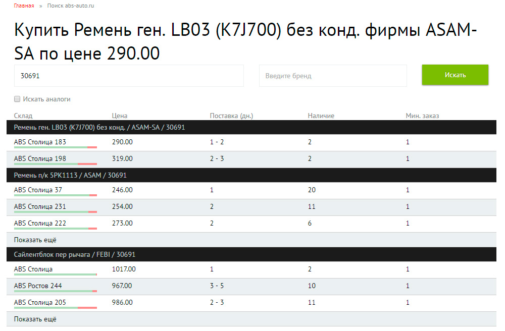 Решение позволяющие искать цены/наличие/срок поставки на запасные части, используя API сайта ABS-AUTO.RU.