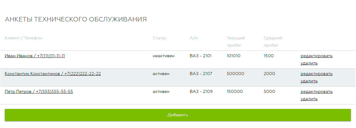 Анкеты технического обслуживания