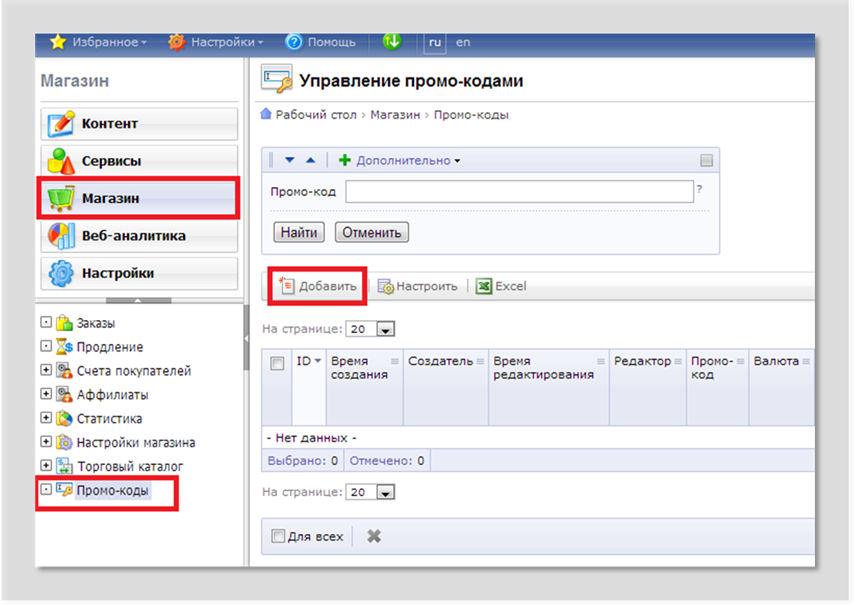Основные функции модуля «Промокоды, бонусы на счет»: