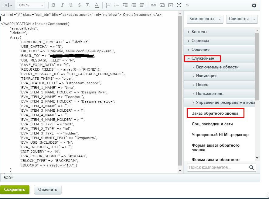 Код компонента можно вызвать из любой части сайта: ограниченной области или страницы. Форма адаптивна, растягивается по ширине окна.