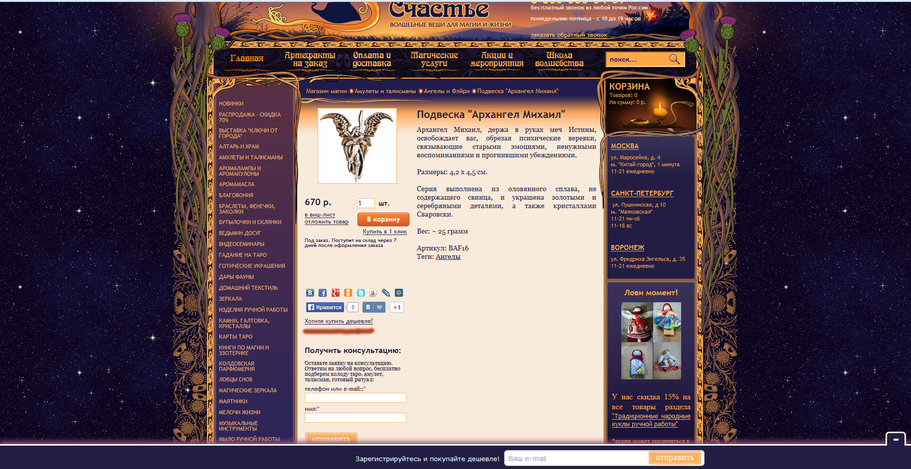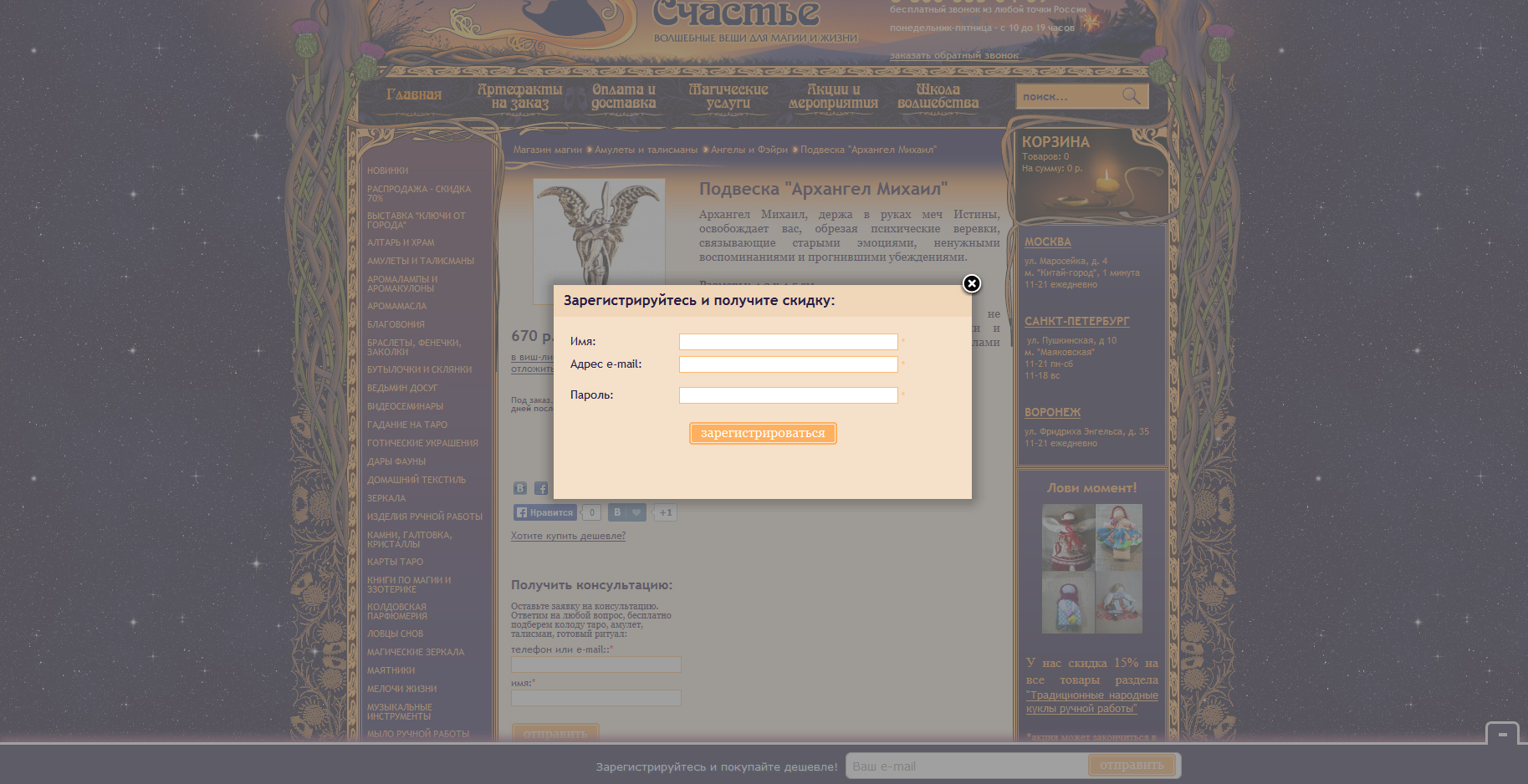 3. Осуществлять подписку пользователя на новости магазина.