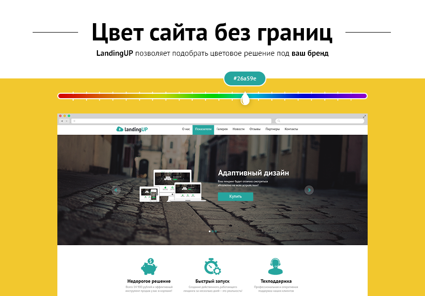 Выбор цветовых настроек без ограничений и компоновки блоков решения позволит соорудить индивидуальную страницу именно под ваши цели.