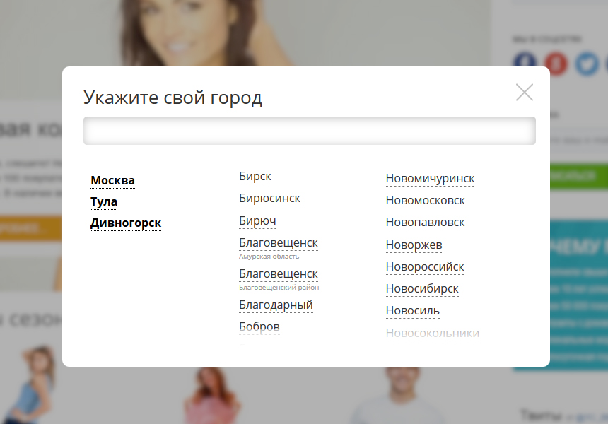 Улучшенный выбор местоположения с определением по IP, выбор города из списка