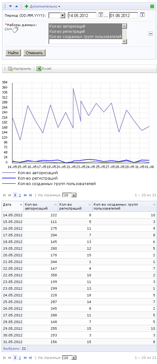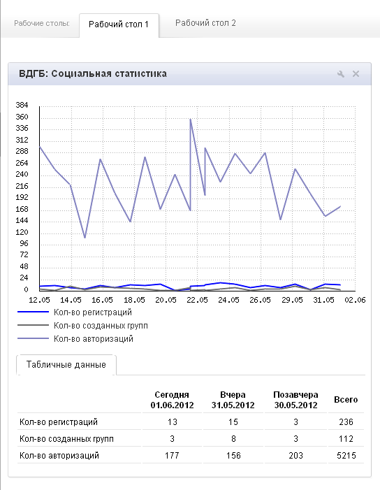 Модуль интегрируется в администраторский интерфейс 1С-Битрикс: Управление сайтом , позволяет увидеть все данные как в табличном представлении , так и в виде графиков, графики можно строить либо по отдельности, либо вместе.