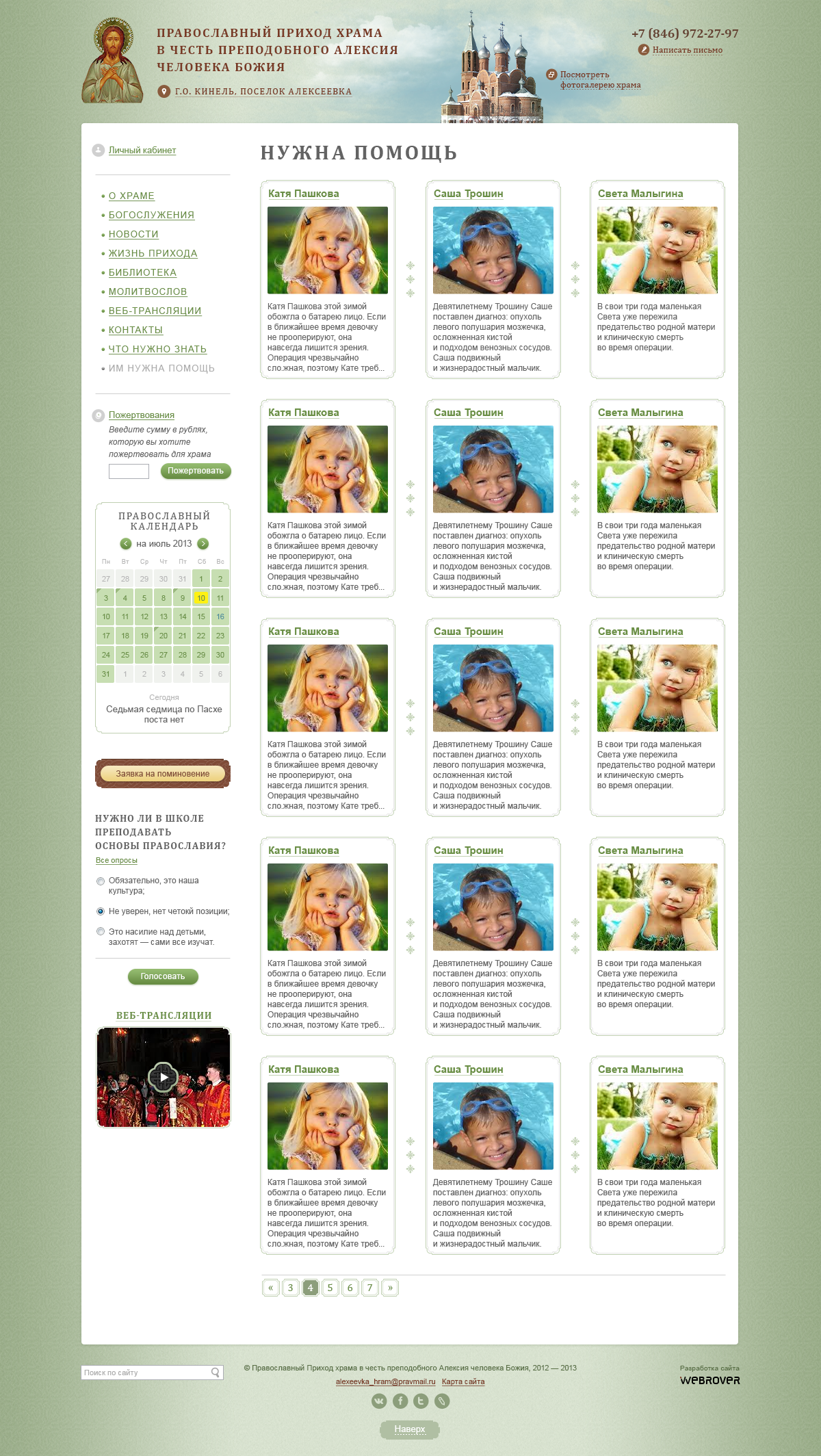 - Информационная страница с галлереей (на основе этого шаблона может быть создана любая текстовая страница: страница о настоятеле, страница о храме и т.д.);
