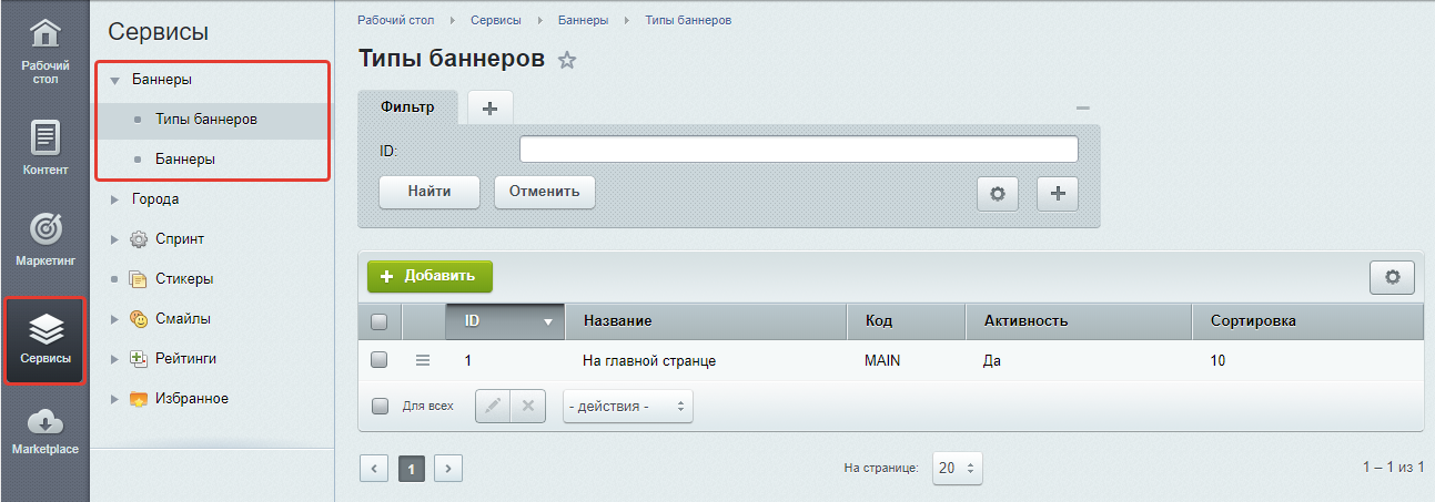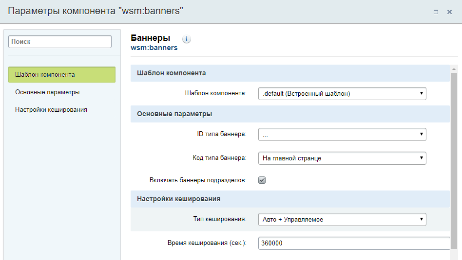 В настройках компонента задается тип баннеров, который он должен отображать.