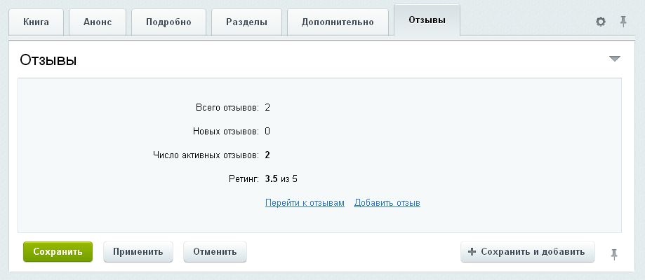 - Отображение рейтинга и информации о отзывах во вкладке страницы редактирования элемента