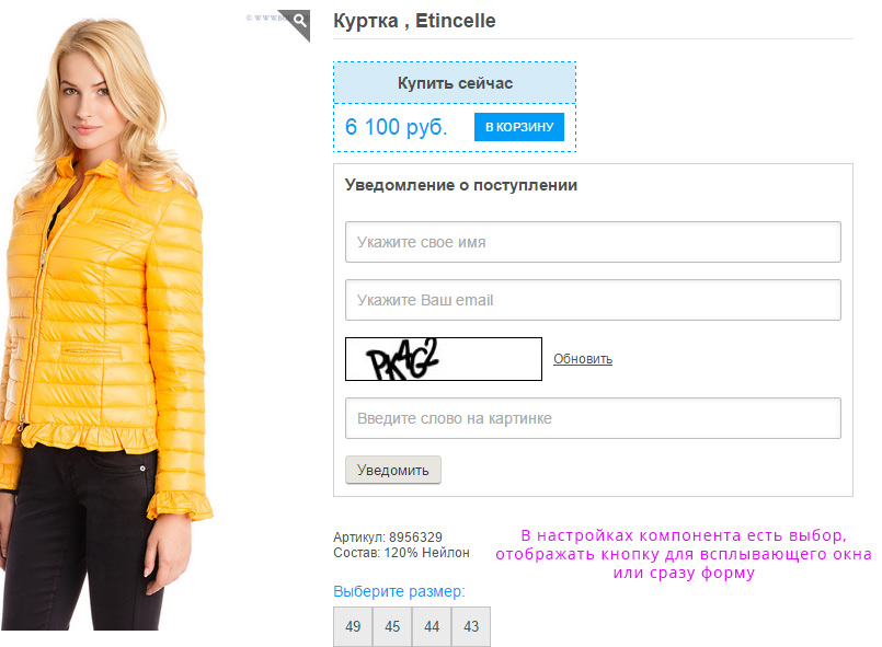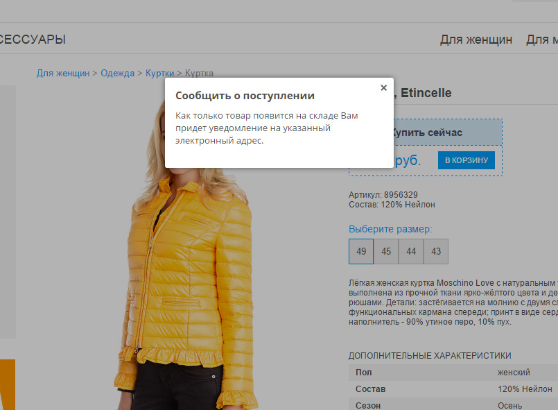 Подписка на поступление товара на склад