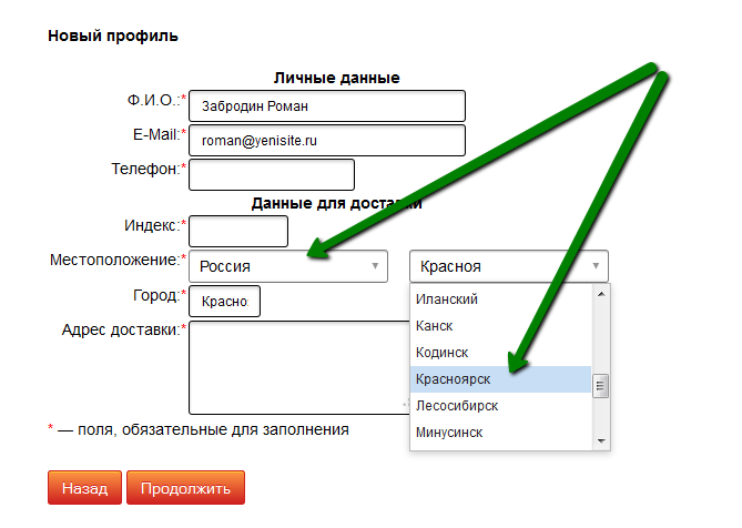 После регистрации данные о местоположении автоматически заполнены в форме редактирования профиля пользователя.