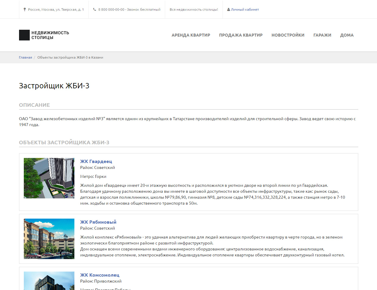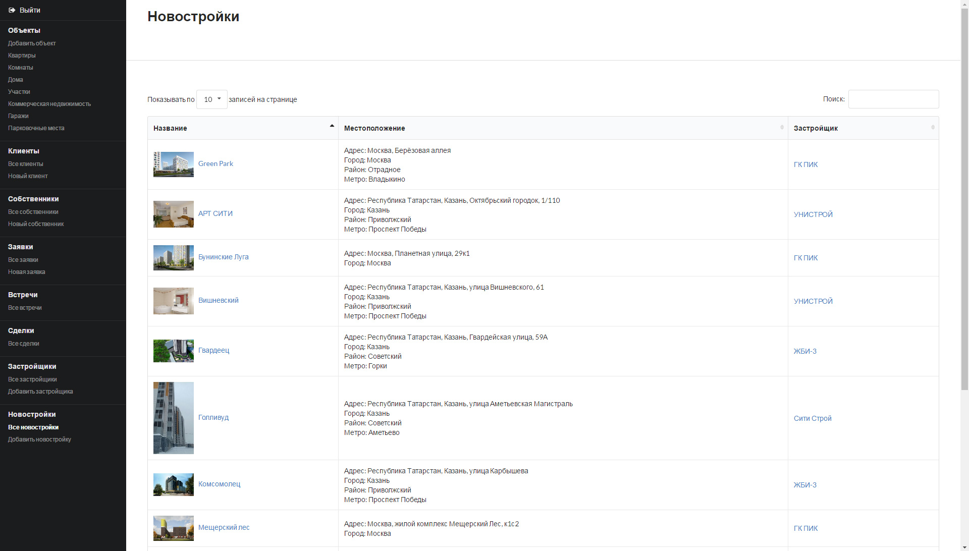 В продукте реализована возможность вести общий справочник застройщиков, с привязкой к городам в которых застройщик ведёт свою деятельность. Информация из этого справочника может быть привязана к объекту, и отображена на сайте.