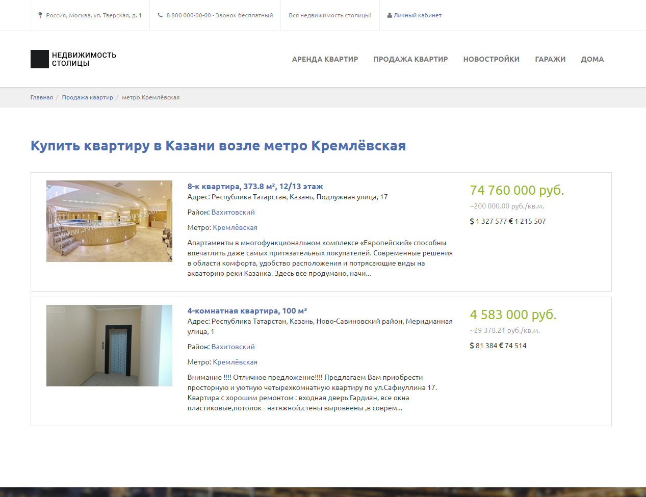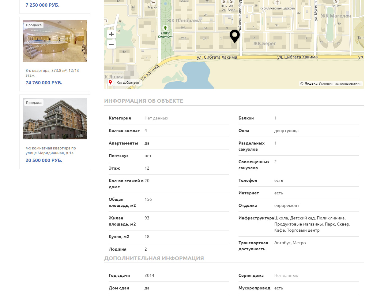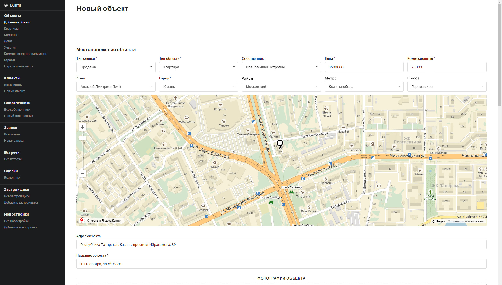 - Автоматическое заполнение географических данных объекта: улица, район, ближайшие станции метро, жилой комплекс